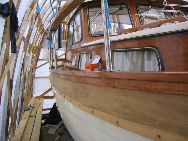 Veneen kunnostus 2014Keulakaiteiden, pimennysverhon ja maasähköjärjestelmän asentaminen.