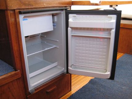 Vaihdoimme veneen alkuperäisen jääkaapin uuteen, koska nykyiset jääkaapit kuluttavat veneen alkuperäistä jääkaappia vähemmän virtaa. Uudeksi jääkaapiksi valitsimme Isotherm cruise 42, joka sopi pienillä muutoksilla aiemman jääkaapin tilalle. Uuden jääkaapin keskimääräinen virrankulutus on 0,6 A / h, joten akku ei ole päässyt loppumaan useammankaan päivän satamassa olon jälkeen.