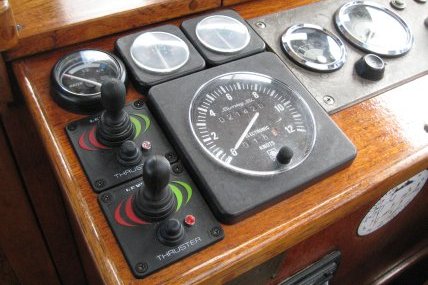 Ohjailupaneelit asensimme ruorin vasemmalle puolelle. Näin ollen toisella kädellä voi käyttää saman aikaisesti oikealla puolella olevaa moottorin hallintalaitetta. Ohjailupaneeleilta vedimme lopuksi kaapelit ohjailupotkureille. Keulaohjailupotkurille saimme vedettyä kaapelin sähkökaapista lähtevän asennusputken kautta ja peräohjailupotkurille moottoritilan johtokourussa. Tämän jälkeen pääsimme testaamaan potkureita. Ensimmäisen kesän perusteella olemme erittäin tyytyväisiä potkureihin. Rantautuminen on todella helppoa ja veneen saa tarvittaessa kääntymään lähes paikallaan.