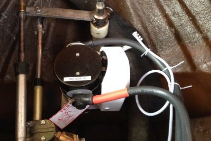Kun veneessä tehtiin joka tapauksessa laminointitöitä ohjailupotkurien tunnelien takia, päätimme tehdä suihkukaivon ja asentaa myös veden poistopumpun.