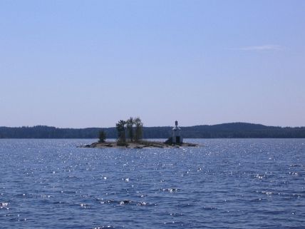 Puoli yhdentoista aikoihin aamupäivällä lähdettiin ajelemaan Satamosaaren suojaisasta laguunista Saimaalle. Heti laguunin suulta ulos tultaessa huomasi, että aallokko oli melko kovaa. Myöhemmin saimme tietää, että sääennusteessa oli annettu Saimaalla liikkujille puuskissa voimakkaasta tuulesta 12 m/s. Ehkei se ihan niin kovaa ollut mutta vene keikkui vaahtopäiden seassa kyllä melko kovasti.