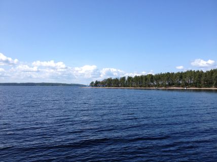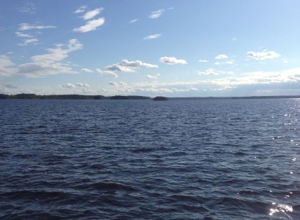 Sää oli erinomainen ja Suur-Saimaallakin oli vain pieniä aalto, kuten Rastiniemen kohdalla otetussa kuvassa näkyy.