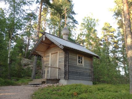 Itäisestä retkisatamasta polku jatkuu kohti saaren pohjoisosaa. Polun varrella on kolme tsasounaa eli pientä kappelia. Ensimmäisenä vastaan tulee kuvassa oleva Valamolainen tsasouna, jonka esikuva on Heinävedellä Uuden Valomon luostarin rantatsasouna. Myös muut saaressa olevat tsasounat on nimetty jonkin luostarin skiitaksi ja valittu kyseisestä luostarista sopiva rakennus, jonka kopio on rakennuttu Ilkonsaareen.