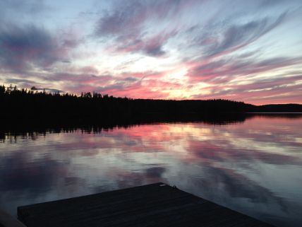 Kaunis iltarusko Ruuhonsaaren saunalaiturilla.