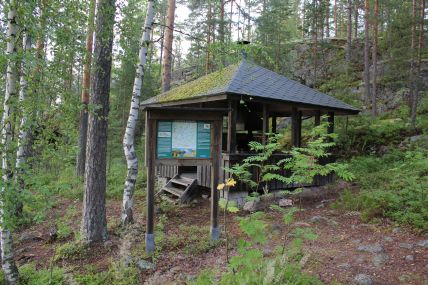 Retkisataman laiturin vieressä on kallioiden siimeksessä grillikatos.