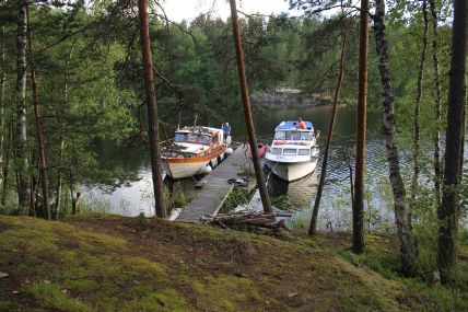 Neitvuorella on rannassa hyvä laituri. Tullessamme takaisin veneelle saapui retkeilijöitä rantaan kanooteilla. Yöksi jatkoimme matkaa Pienpuolen retkisatamaan.