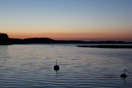 Kaunis iltarusko Kaitasaaren retkisatamassa Unnukalla.