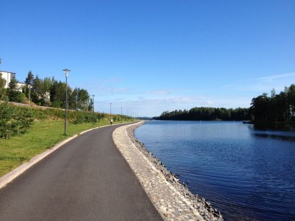 ...ja kevyen liikenteen väylä, jossa on hyvä käydä aamulenkillä.