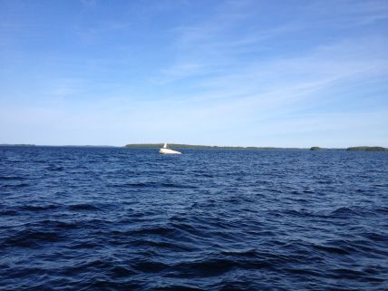 Aamiaistauko Hietasaaren edustalla ankkurissa.