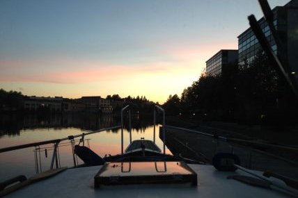 Pitkällä Pihjalavedellä oli todella kaunis iltarusko. Ilta vaihtui jo yöksi ennen kuin olin perillä Savonlinnassa. Navigointi sujui kuitenkin helposti valaistulla syväväylällä.