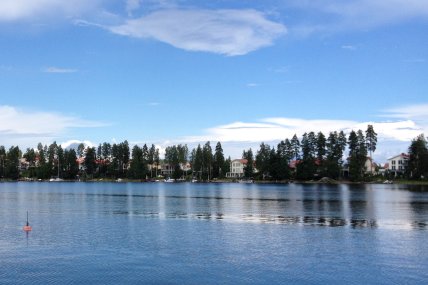 Pirttilahden venesataman vastarannalla on omakotitaloja.