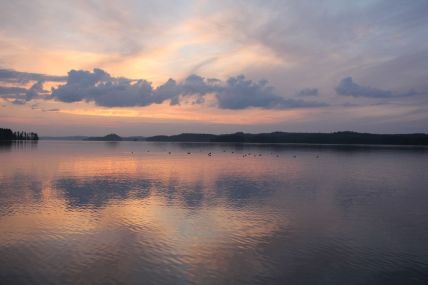 Seuraavana päivänä jatkoin matkaa kohti Varkautta. Tänä kesänä vesi oli niin korkealla, että Pirttivirran rautatiesilta piti avata päästäkseni Taitotalon rantaan yöksi. Illalla sain nauttia kauniista iltaruskosta.